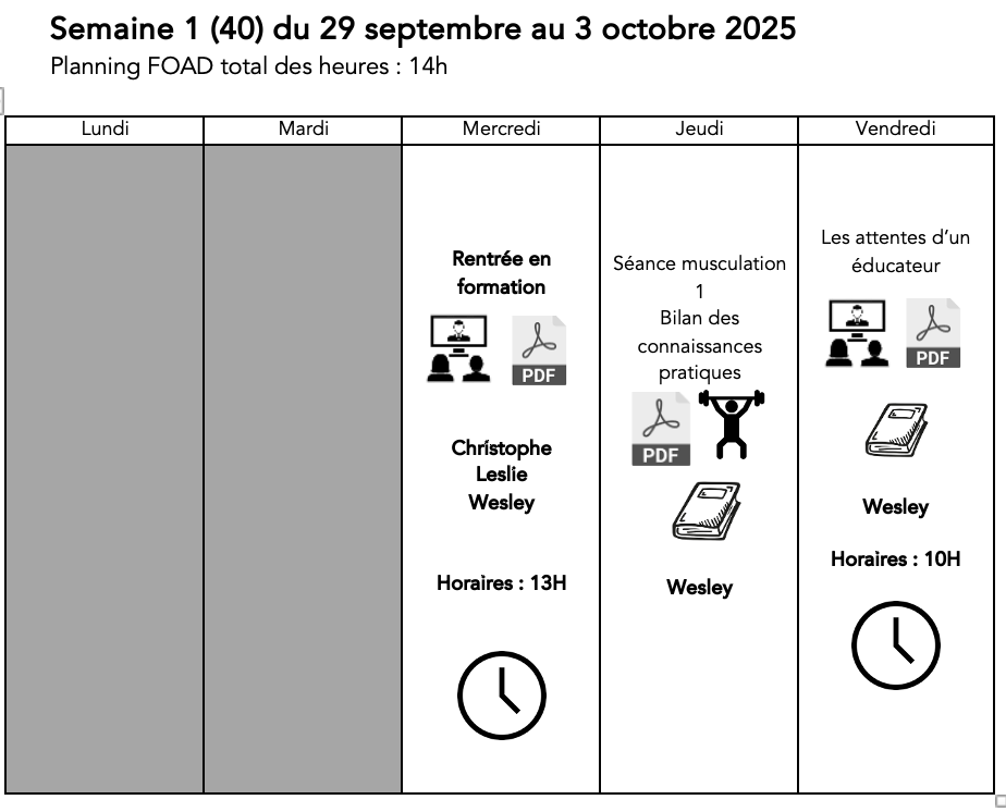 Semaine 1 (40) du 29 septembre au 3 octobre 2025